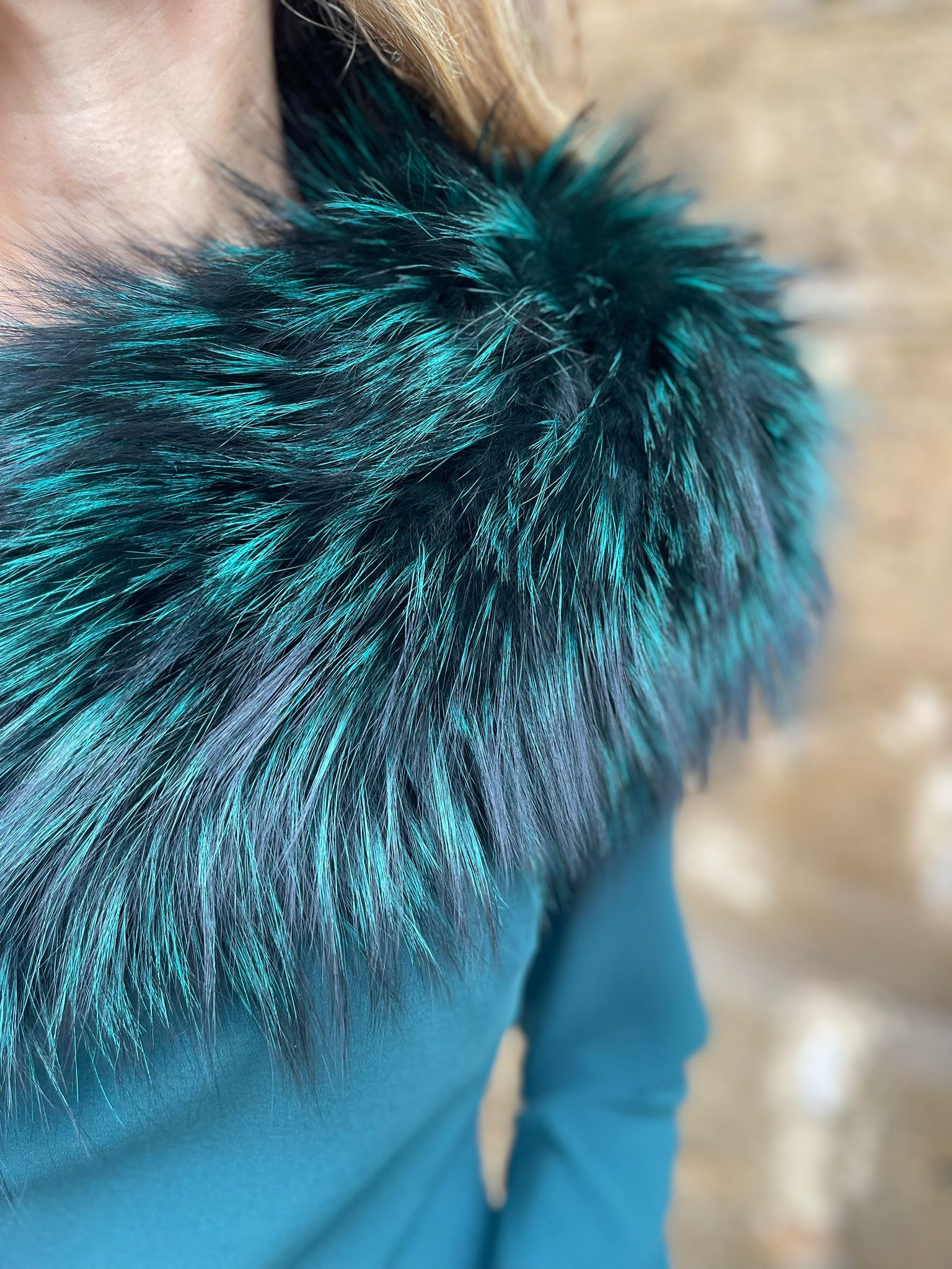 Añade un toque de glamour a tus looks con esta sofisticada estola de pelo largo en tono verde. Su textura suave y esponjosa aporta volumen y elegancia, envolviendo los hombros con un aire cálido y lujoso. Ideal para eventos, bodas, noches especiales o con un look más casual a modo de cuello para los días de invierno. Disponible en varios colores. Pelo de zorro natural.